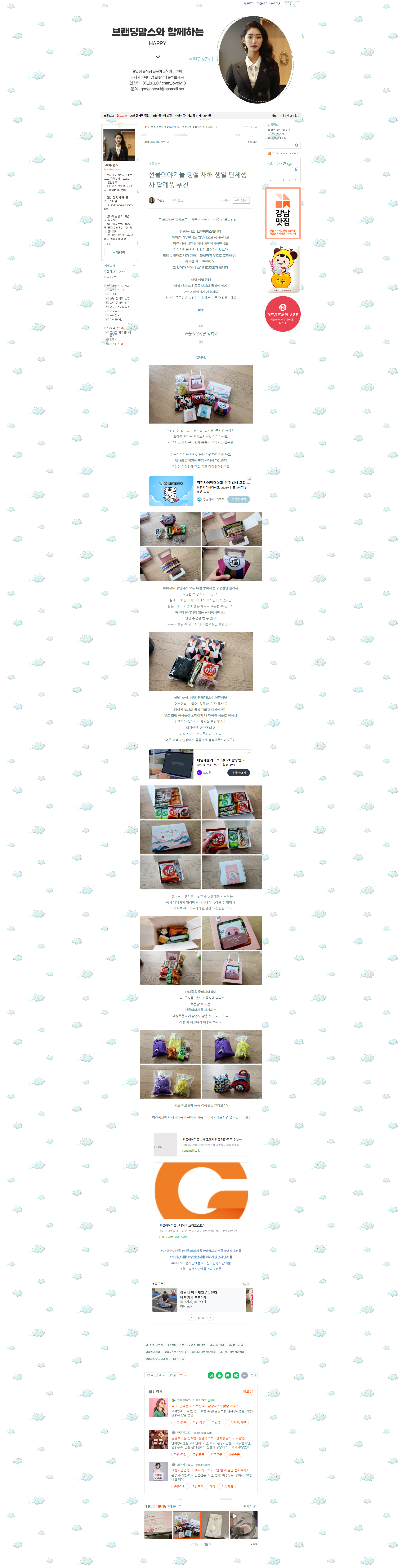 선물이야기몰 명절 새해 생일 단체행사 답례품 추천 선물이야기몰 0 169 02.06 10:45 https://blog.naver.com/branding_mom/224172871311 + 59